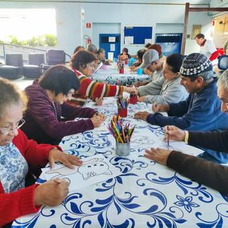 Além de conversar sobre suas experiências e historias vividas com amigos cães, os idosos fizeram pinturas e desenhos relacionados ao tema.