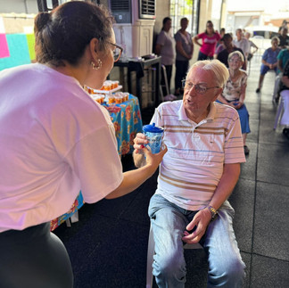 Para encerrar a manhã de atividades físicas, foram servidos café, sucos, bolo e salada de fruta aos idosos, que aprovaram o passeio na academia.